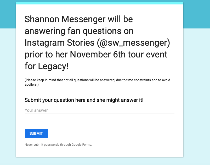 Shannon is offering a live Q&A session on Nov. 6, 4:45pm (mountain time)(Will be around 6:45 NY time). It will take place on her Instagram account (https://www.instagram.com/sw_messenger/). She will answer questions by fans, picked by @simonkids.